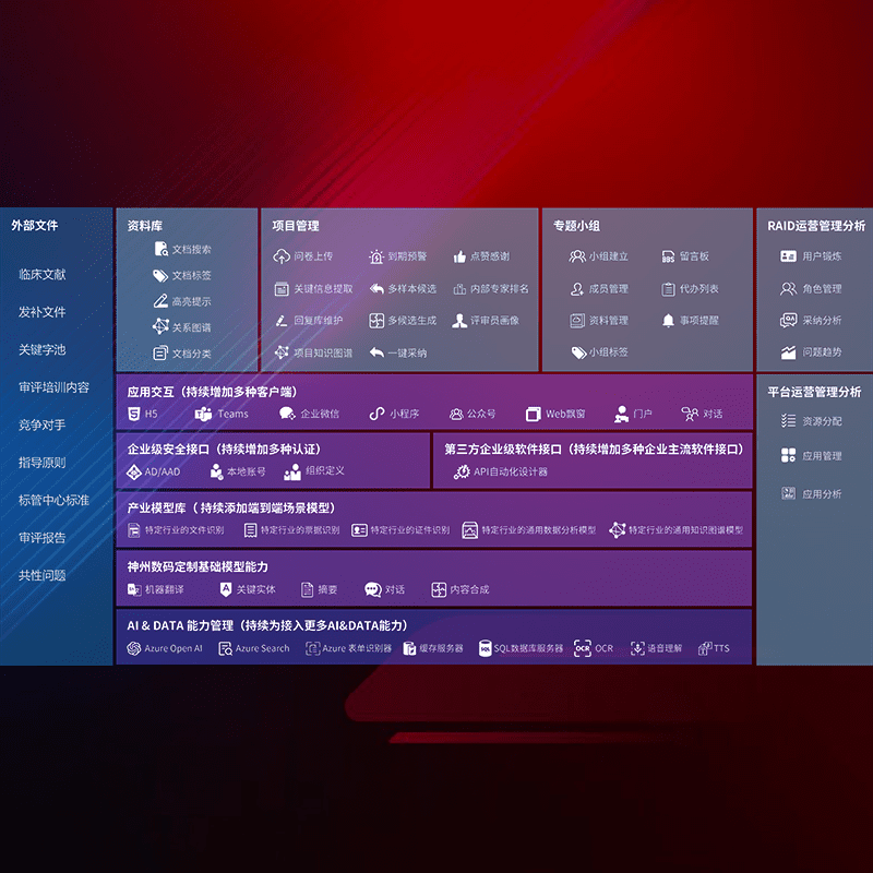 医疗器械产品上市前,,,,要熟悉严格与繁复评审标准,,,,整理分析监管机构指导文件中的海量信息。。。企业急需一个智能化解决方案,,,,提升知识管理效率,,提高评审通过率,,,,以提升其市场竞争力。。。